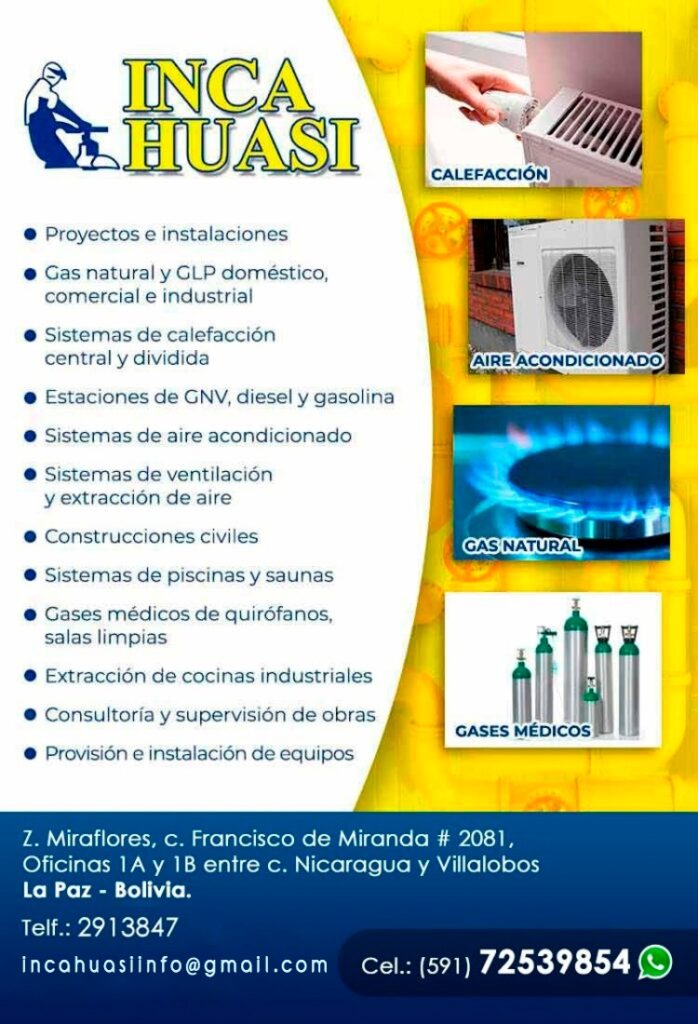 - Realizamos la instalación de gas natural y GLP, para la industria, comercio y domicilios en Bolivia